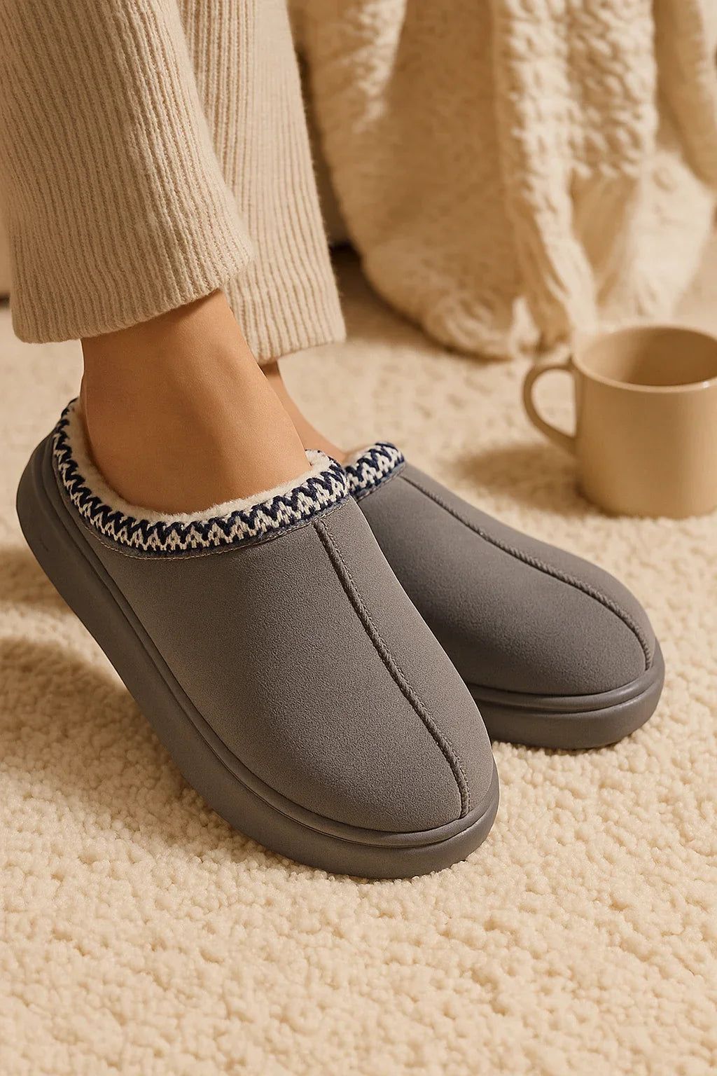 Chaussures grises hiver fourrées femme maison | Fourrés, Semelle Épaisse