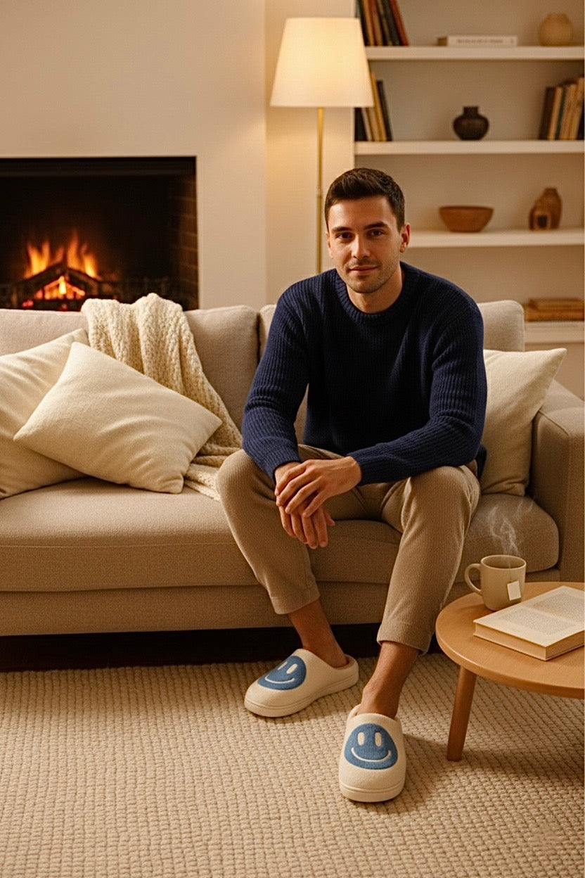 Chaussons maison homme bleu | Confortables & Antidérapants