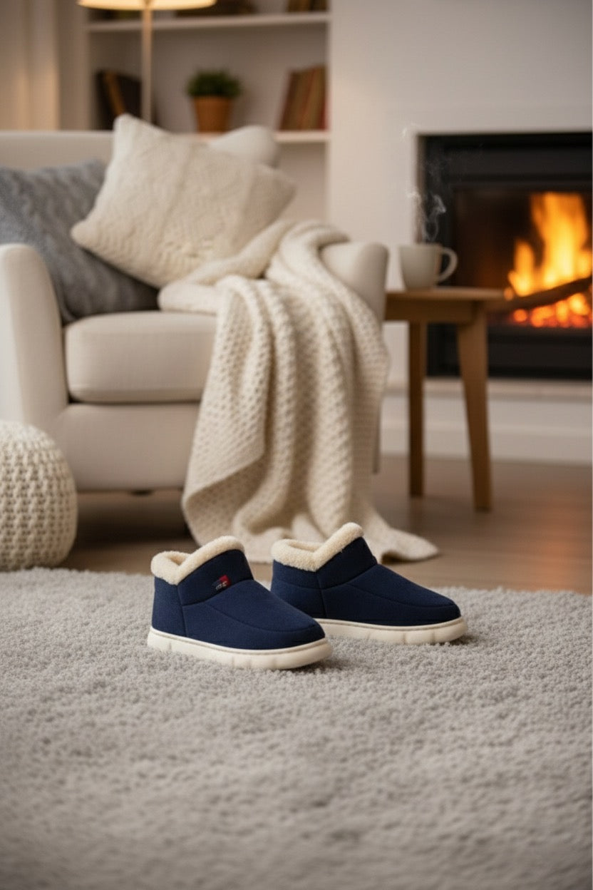 Bottines Pantoufles homme Hiver bleu velours chaude